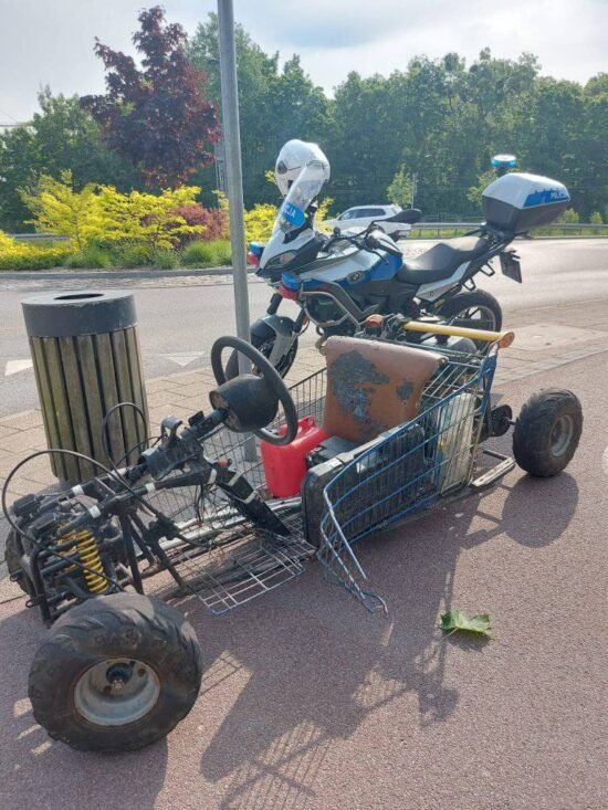 ГданьскНовостиПольшаВ Польше 19-летний парень, лишённый водительских прав, соорудил себе «авто» из продуктовой тележки и катался на нём по городу