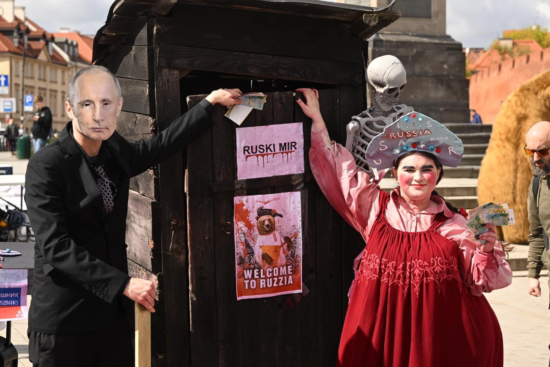 ВаршаваНовостиПольшаПротестыУкраинаВ Варшаве прошёл перформанс против торговли Евросоюза с Россией06.04.2024 18:36