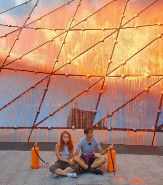 ВаршаваНовостиПротестыВ Варшаве климатические активисты облили краской фасад ТЦ Złote Tarasy28.08.2024 17:51
