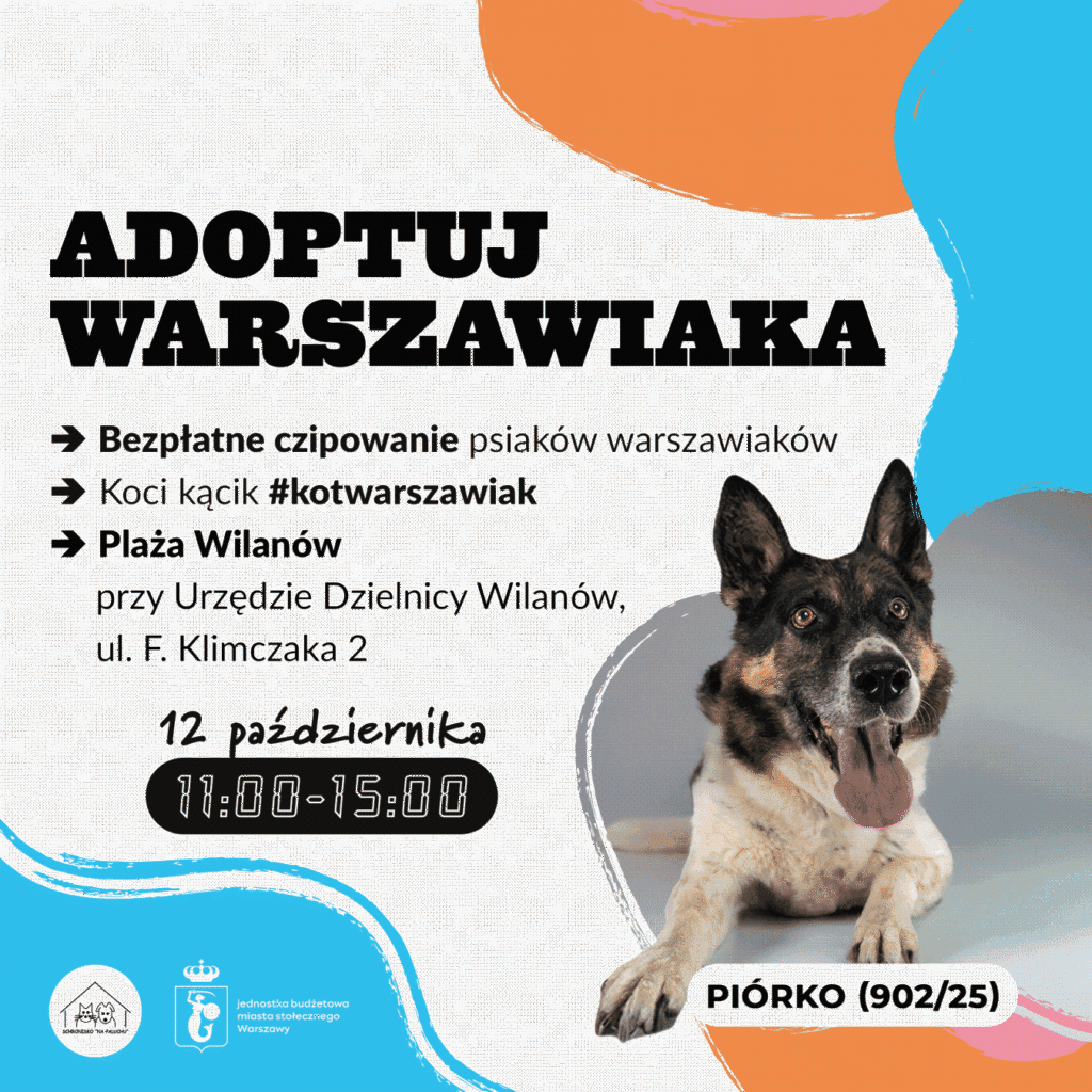 Акция «Адаптируй варшавяка» уже много лет способствует ответственному усыновлению собак и кошек. Каждый раз она объединяет сотни варшавян — семьи, друзей и прохожих, которые приходят познакомиться с питомцами приюта и услышать их истории. Во время события гости смогут пообщаться с волонтёрами, узнать больше о характерах и потребностях животных, а также о процедуре усыновления. В рамках мероприятия будет проходить бесплатная чипизация собак с регистрацией в базе Safe Animal.