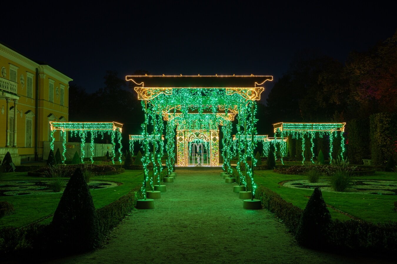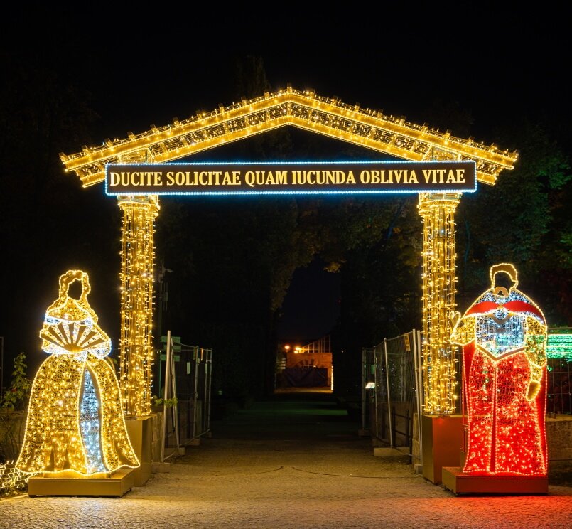 Во дворцовом дворе можно окунуться в атмосферу королевской жизни, сделав памятные снимки на фоне световых инсталляций, символизирующих ключевые моменты правления Яна III, такие как любовь, война и дипломатия. У входа в парк посетители могут примерить костюмы, вдохновленные модой XVII века, и отправиться в Северный сад, где аллея, украшенная светящимися лианами.