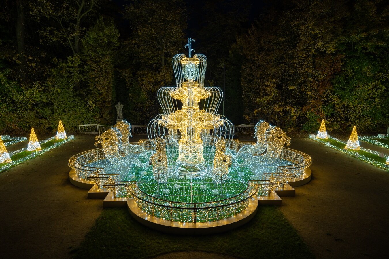Посетителей ждёт интерактивный опыт и образовательные элементы. С главного входа гостей встретит 75-метровый световой тоннель, сопровождаемый классической музыкой. По пути можно полюбоваться живописными воротами и музыкально-световыми инсталляциями на барочной нижней террасе, которые полюбились посетителям в прошлые годы.