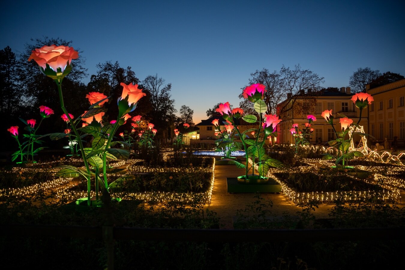 Королевский сад света в Вилянувском дворце — это уникальная выставка под открытым небом, где тысячи разноцветных светодиодов создают великолепные композиции. Она стала популярной достопримечательностью Варшавы, привлекая как детей, так и взрослых.