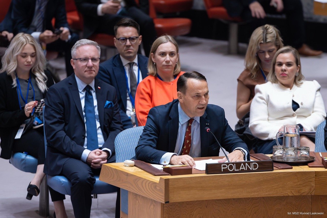 В понедельник в штаб-квартире ООН в Нью-Йорке состоялось экстренное заседание Совета Безопасности ООН в связи со вторжением истребителей в воздушное пространство Эстонии. От имени Польши выступил министр иностранных дел Радослав Сикорский.