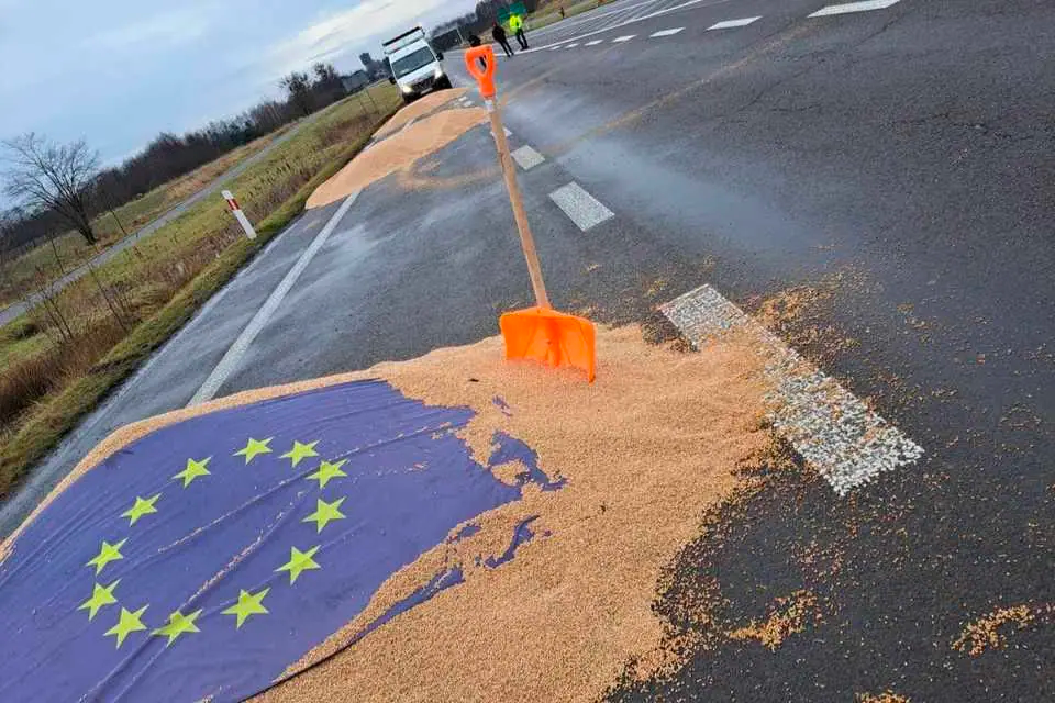 Напомним, в воскресенье протестующие польские фермеры высыпали зерно из украинских фур на границе. Из трёх фур высыпали примерно по 3 тонны зерна.