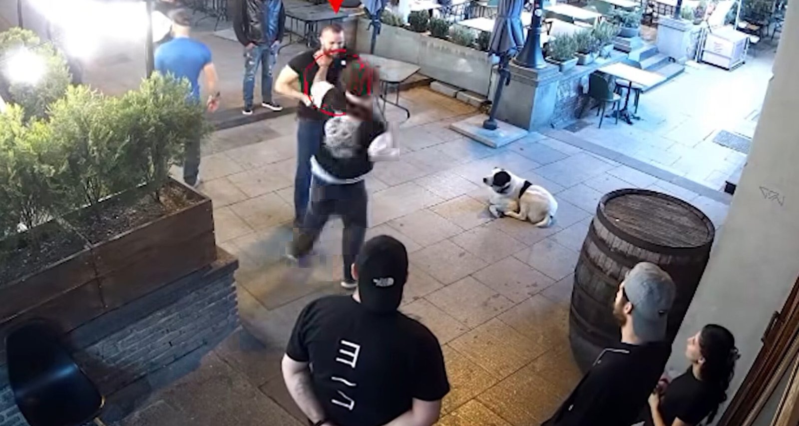 Когда один из сотрудников падает, нападавший переключается на второго и также избивает его, затем нападает и на третьего. Несколько человек попытались разнять дерущихся. У одного из мужчин в руках был тупой предмет, которым, по данным МВД, он наносил удары гражданам Польши.