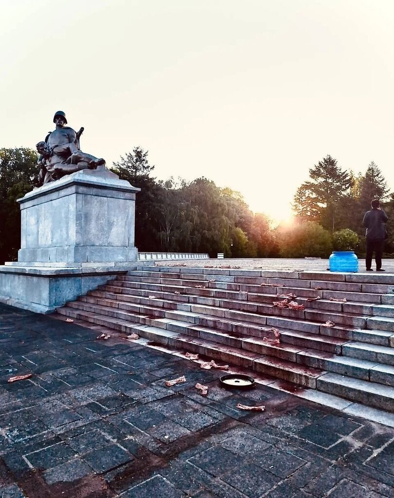Утром 9 мая неизвестные в Варшаве разлили бутафорскую кровь и разбросали кости на Кладбище советским воинам. Около 10 часов утра Муниципальная клининговая служба Варшавы очистила территорию.