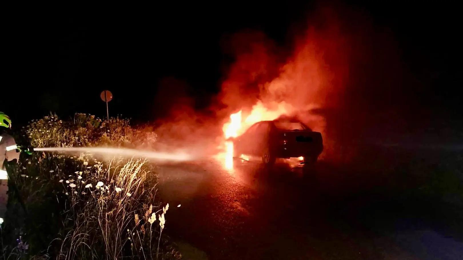 Информация о пожаре поступила около часа ночи. Полиция уже установила владельца автомобиля и лицо, пользовавшееся машиной в день происшествия.