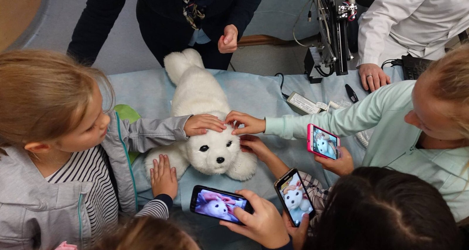 Робот-тюлень по имени Фредзия, оснащённый искусственным интеллектом, реагирует на прикосновения, двигает хвостом, открывает глаза и издает звуки, напоминая настоящего тюленя. Его присутствие оказывает терапевтический эффект, снимая депрессию и тревогу, а также способствует эмоциональной поддержке детей.