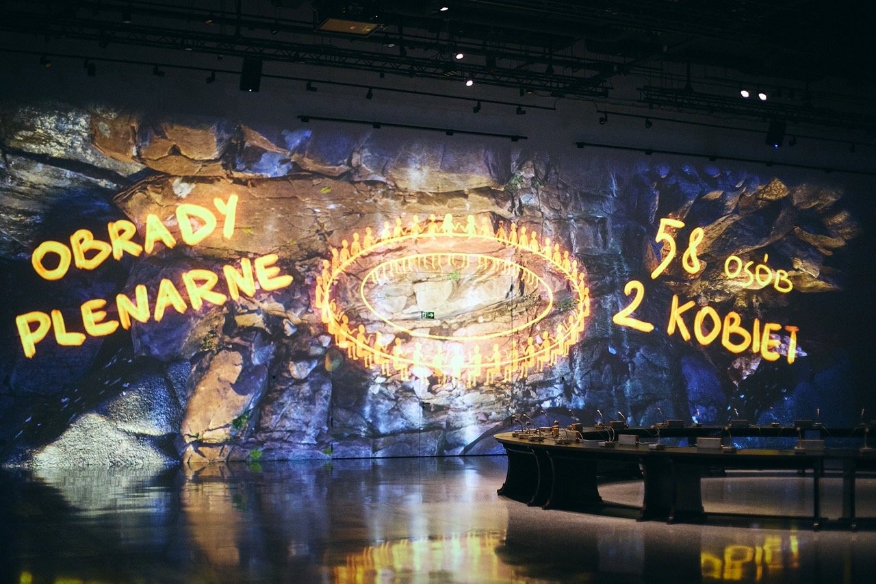 Выставка имеет уникальную формулу — это так называемая монообъектная экспозиция, где в центре находится Круглый стол, вокруг которого строится история распада Польской Народной Республики, политических перемен и социального опыта прорыва 1989 года.