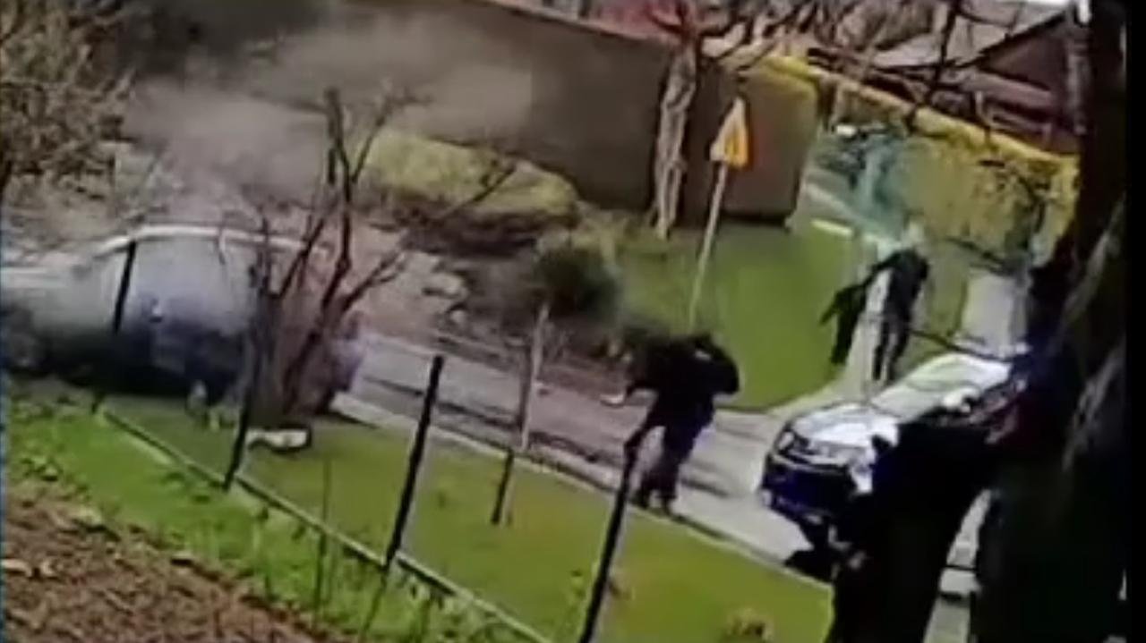 При виде полицейских юный водитель запаниковал, свернул с дороги и совершил наезд на дорожное зеркало и забор частного дома. Кадры с места происшествия, появившиеся в сети, запечатлели момент, когда двое детей выбегали из поврежденного автомобиля. Один из них попытался скрыться, но был задержан офицерами.