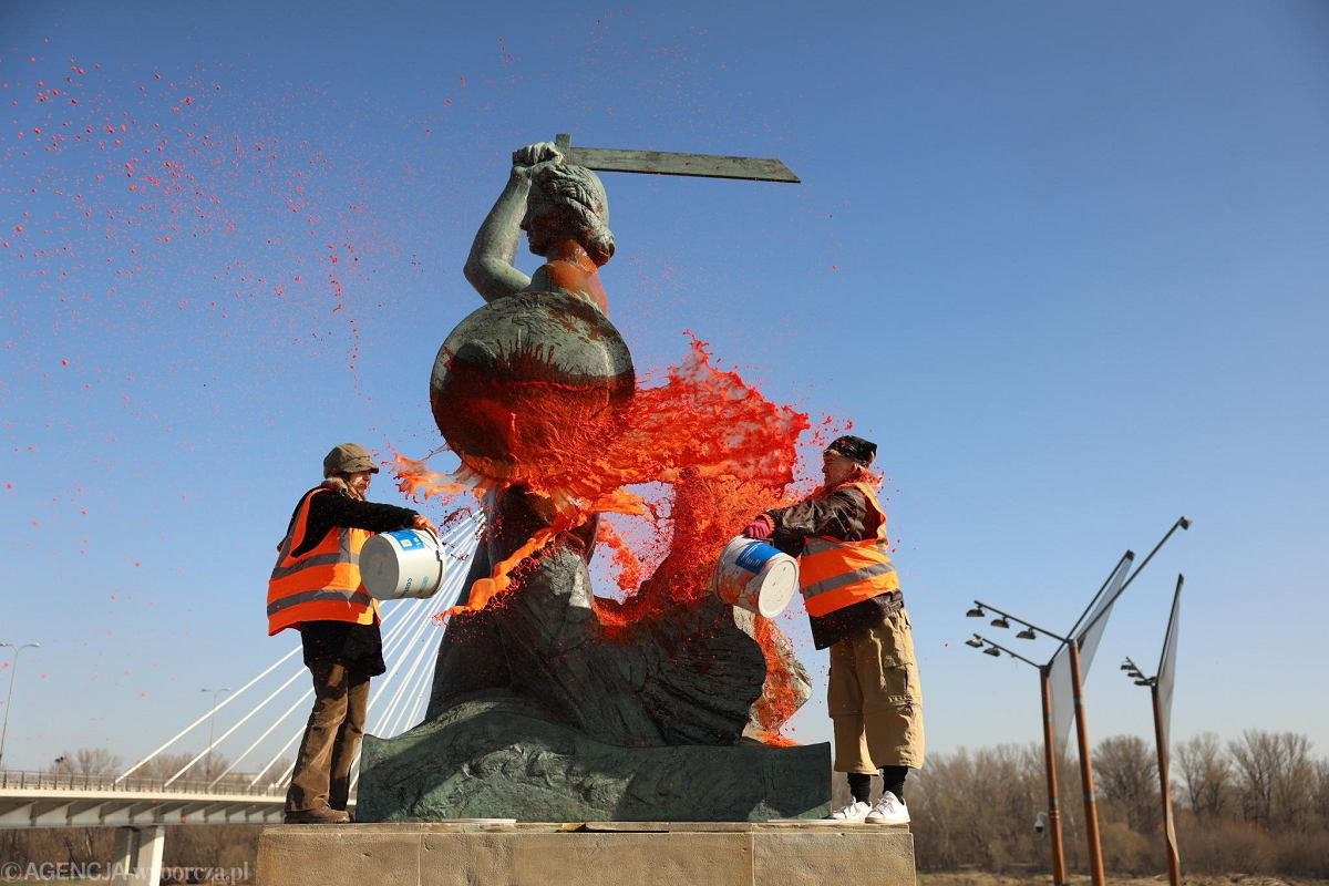 В марте прошлого года памятник был Варшавской русалки климатические активисты облили оранжевой краской. Подробнее об этом мы писали в статье ниже.