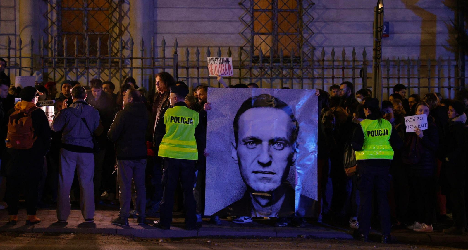 Перед посольством России в Варшаве собралось несколько сотен человек. Большинство из них — россияне, проживающие в Польше, также присутствовали и граждане Беларуси.