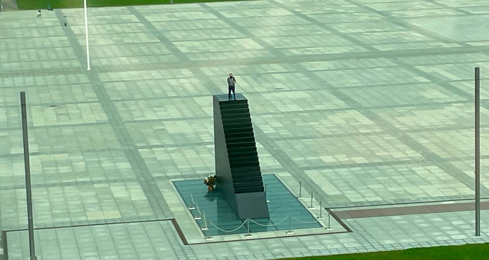 Неизвестный мужчина поднялся к Памятнику жертвам Смоленской катастрофы, который находится на площади Пилсудского в Варшаве. Известно, что он угрожает взорвать себя.
