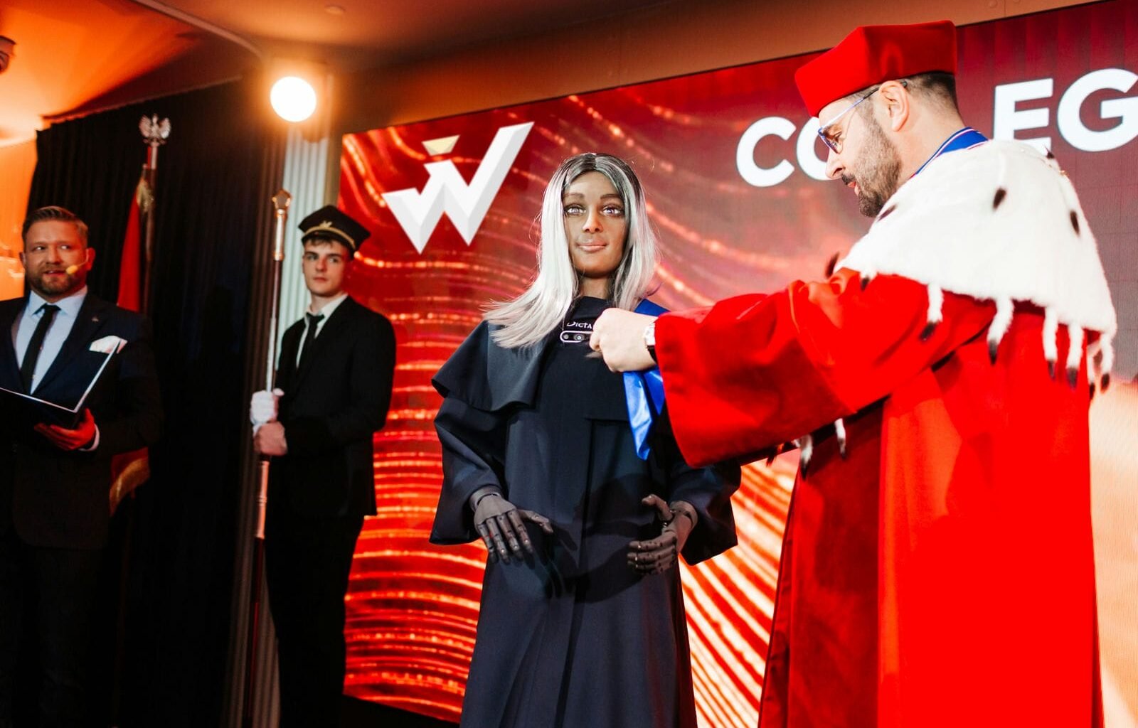 Во время празднования начала нового учебного года и открытия нового кампуса в Варшавском Университете Менеджмента — Collegium Humanum (WUM) впервые в истории состоялась торжественная церемония присвоения человекоподобному роботу почётного звания профессора.