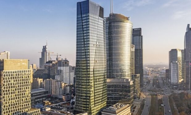 Проект реализуется на Европейской площади в центре Варшавы. Подрядчик ведёт интенсивные работы по отделке внутренних помещений небоскрёба и прилегающего исторического здания Bellona. Из-под строительных лесов уже видны оформленные холлы и общественные пространства.