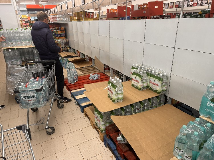 После того как мэр Вроцлава объявил тревогу о наводнении, жители города стали массово запасаться продуктами. Бутилированная вода исчезает из магазинов. Люди скупают целые тележки воды. Панику подогрели сообщения Центра государственной безопасности с призывом пить в затопленных районах только бутилированную воду. «На затопленной территории пейте только бутилированную воду» — такое сообщение пришло на мобильные телефоны жителей Вроцлава в воскресенье вечером. Вроцлавский MPWiK успокаивает. Хотя предупреждение дошло и до жителей Вроцлава, на данный момент оно не распространяется на вроцлавскую воду.