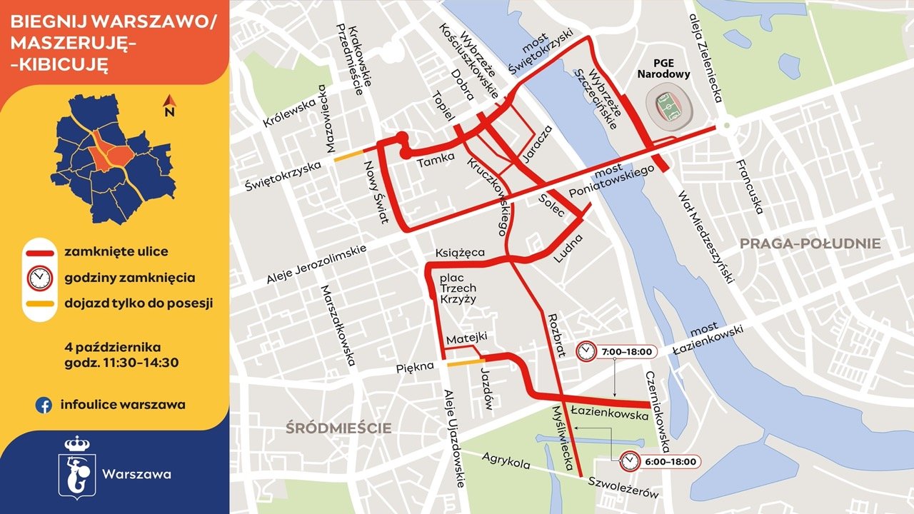В субботу на улицах Варшавы ожидаются значительные перебои с движением транспорта. Перебои вызваны спортивными мероприятиями «Biegnij Warszawo» и «Maszeruję-Kibicuję». Улицы будут перекрыты, а автобусы будут двигаться в другом направлении.