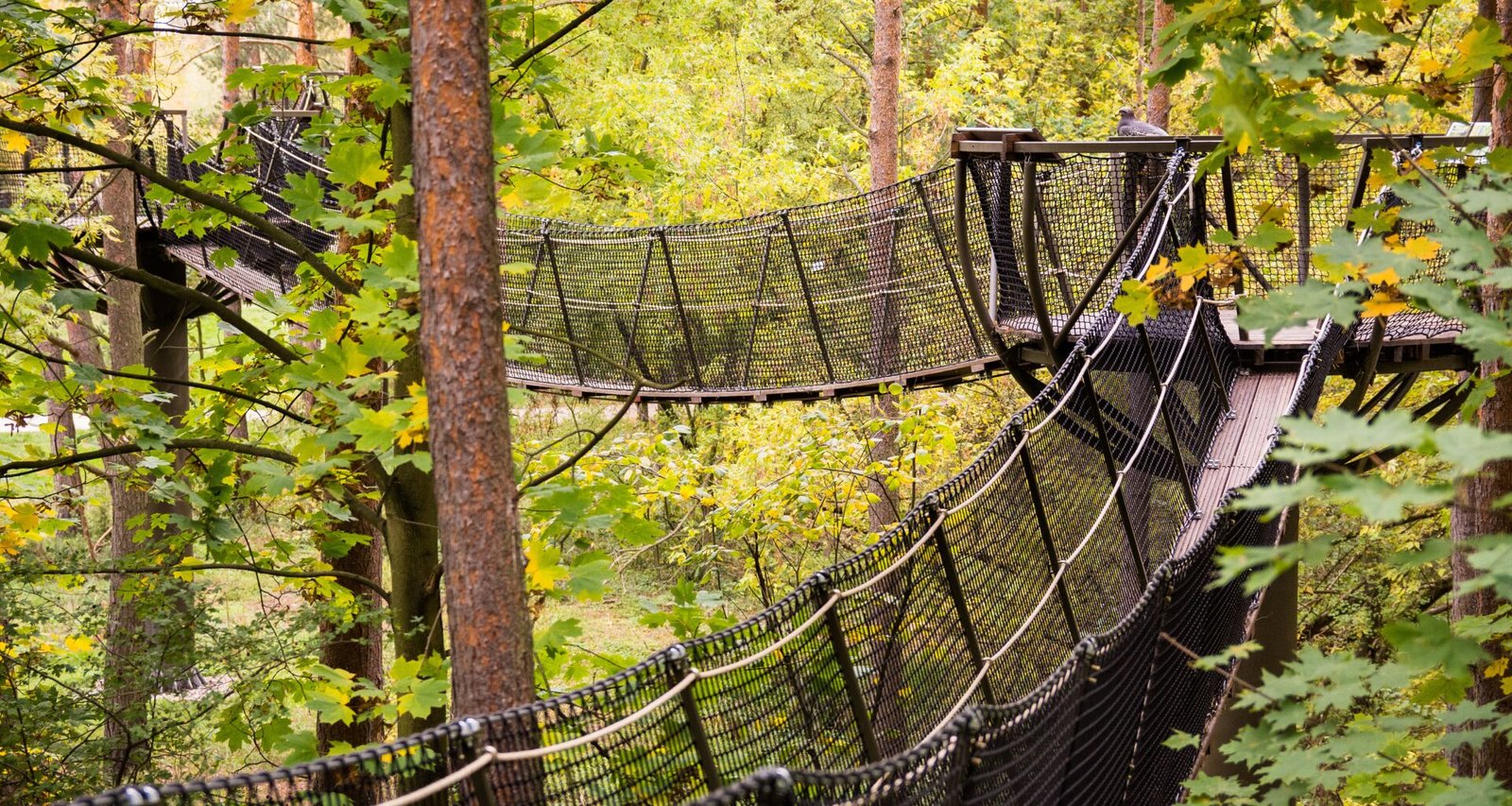 Среди множества достопримечательностей парка стоит отметить смотровую башню, поляну бабочек, лабиринт, плетёные скульптуры лесных животных, водяную мельницу, игровую площадку Викингов, пляж, набережную, канатную дорогу, места для пикника, скалодром. Настоящей жемчужиной парка является пешеходная тропа в кронах деревьев.